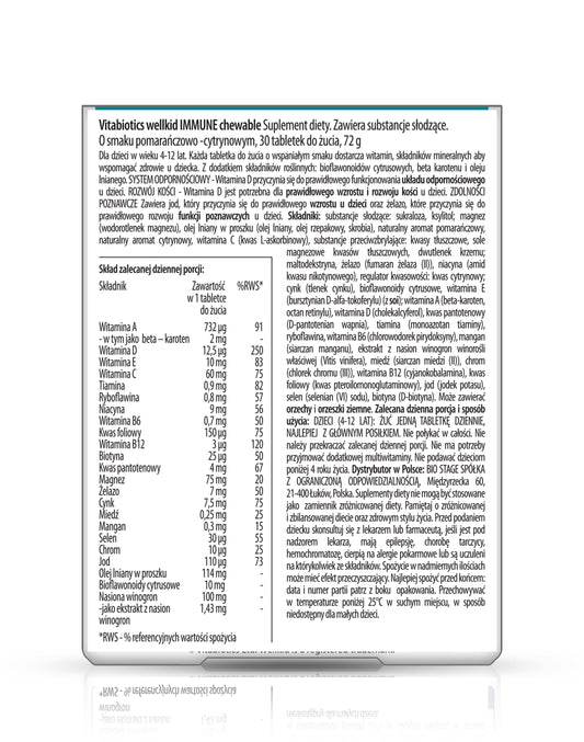 - Formuła oparta na najnowszych badaniach naukowych. Z poziomem składników odżywczych starannie zoptymalizowanym do konkretnych potrzeb rosnących dzieci. - Wellkid Immune Chewable jest produkowany zgodnie z wysokimi standardami kontroli jakości GMP (Good Manufacturing Practice).